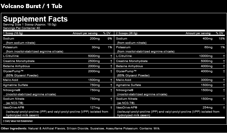 Intracellular hyper-hydration is best-in-class too with a huge dose of Creatine Monohydrate, Glycerpump and Betaine Anhydrous to volumize the muscle and support performance and pumps.